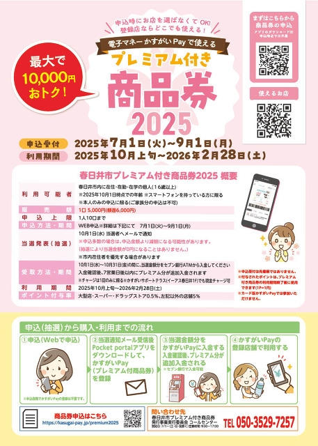 WEB申し込みのみとなります。詳しくはかすがいPAYホームページをご覧ください。